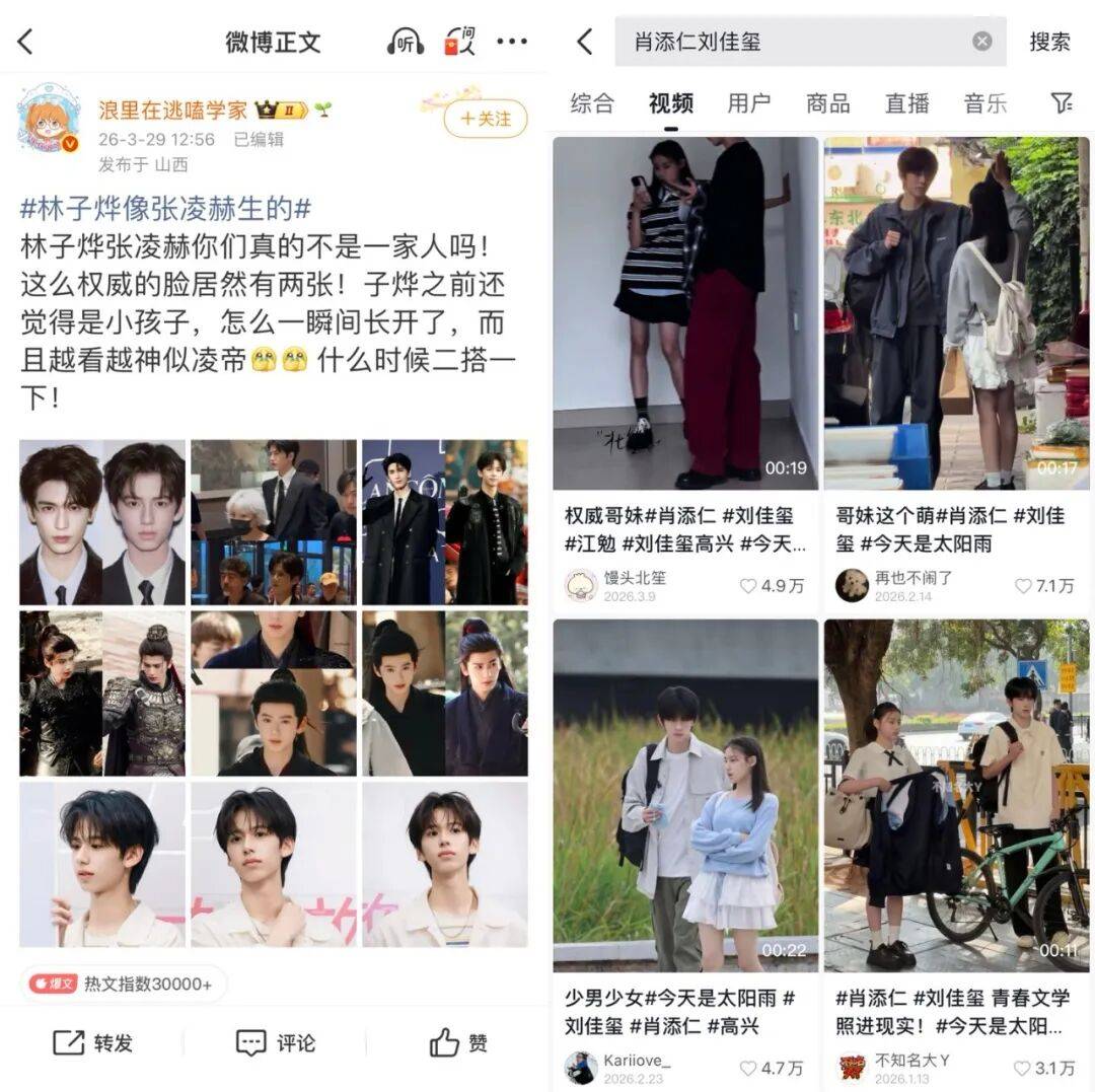 因为更大的年数差,10后还更便利和当红的95后互炒。如“小张凌赫”林子烨、“小陈星旭”徐崴罗,“赵露思御用弟弟”傅铂涵、“虞书欣的好伴侣”陈芷琰。